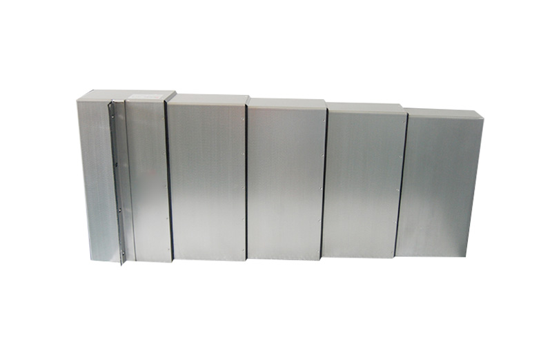 ★ 護(hù)罩的風(fēng)箱速度可達(dá)200m/分;[1] 卷簾防護(hù)罩 ☆在空間小且不需嚴(yán)密防護(hù)的情況下,卷簾防護(hù)罩可以代替其它護(hù)罩??伤健⒇Q直或任意混合方向上安裝使用。占用空間小、行程大、速度快、無(wú)噪音、壽命長(zhǎng)等,是一種理想的防護(hù)部件?!?本產(chǎn)品的結(jié)構(gòu)主要由外殼(不銹鋼板、冷板)、彈簧軸、從動(dòng)軸、刮舌、尼龍纖維布(三防布)等組成,有調(diào)整裝置,松緊可調(diào),分單彈簧、雙彈簧兩種供用戶選擇。此種防護(hù)帶可分為箱體式和托架式兩種安裝形式。鋼板防護(hù)罩